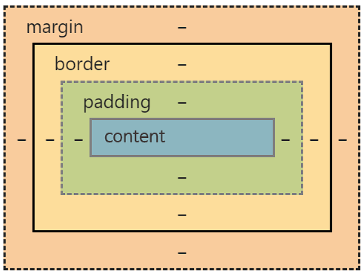 margin, border, padding, content로 경계가 나뉘어있습니다.