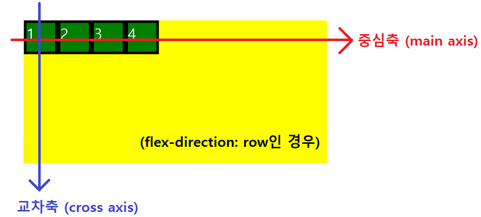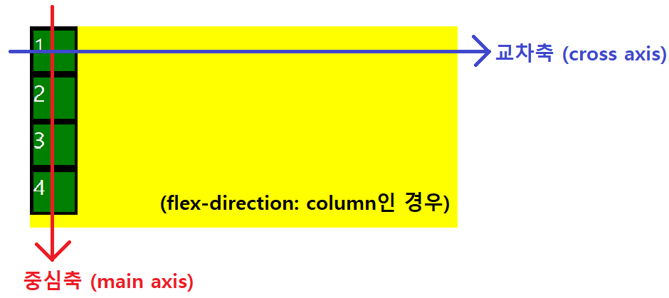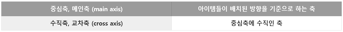 배치된 방향이 가로 또는 세로인지에 따라 중심축과 교차축이 달라지겠죠?