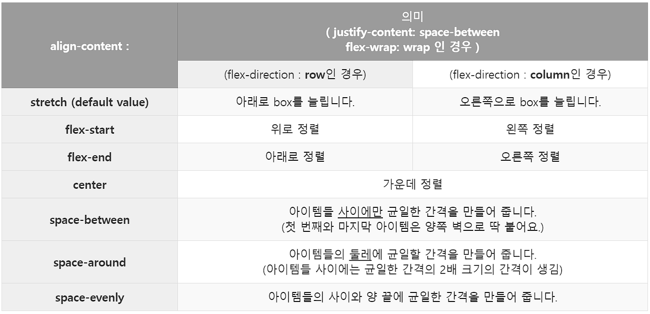 아이템들의 여러 행을 교차축(cross axis) 방향으로 정렬합니다.