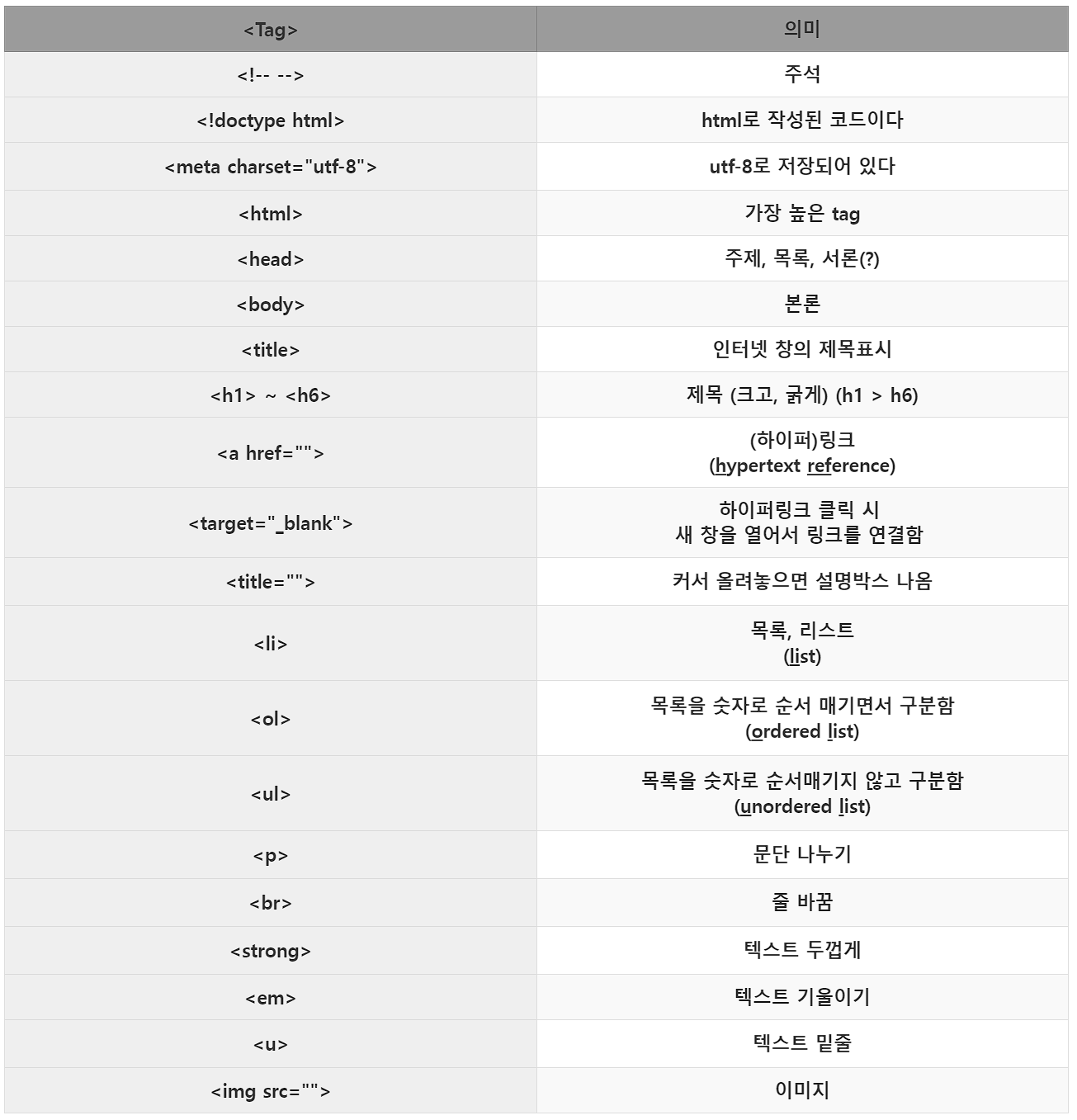 <html lang="en"> <!-- <html> : 가장 높은 tag -->