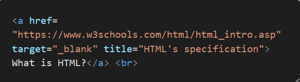 target="_blank" title="HTML's specification">What is HTML?</a> <br>