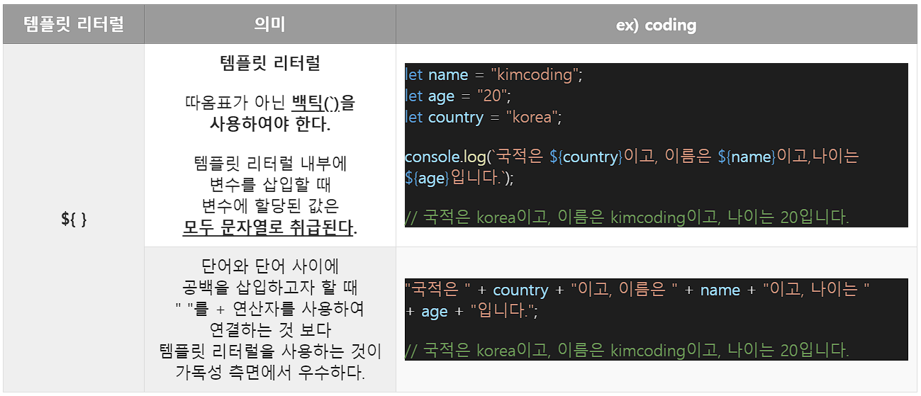 `hi` // 백틱 ~ 백틱