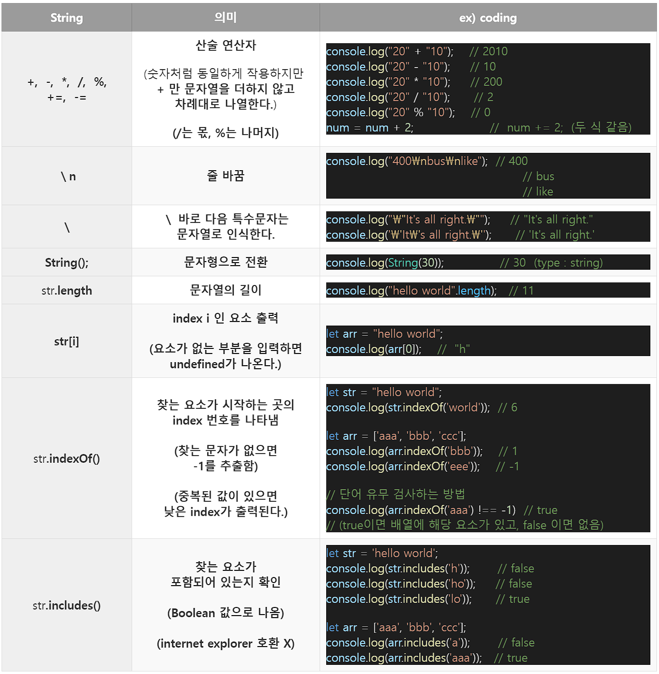 // 문자열 O