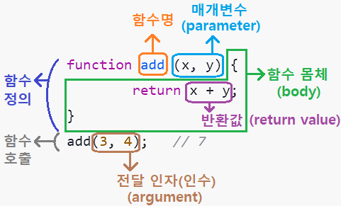 - 함수 몸체는 함수 호출에 의해 실행된다.